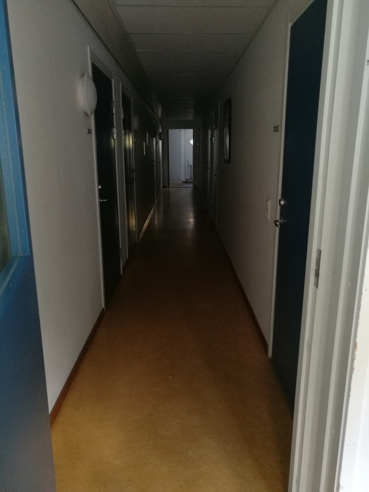 each room with a bathroom and a kitchenette, and each corridor has a shared